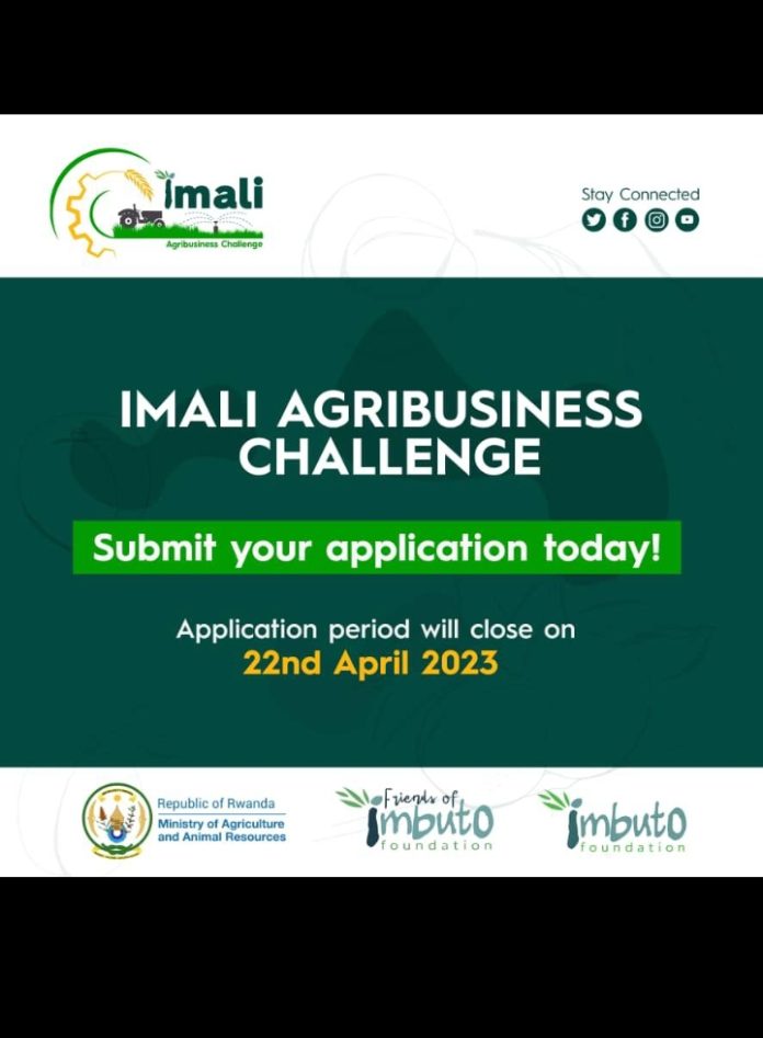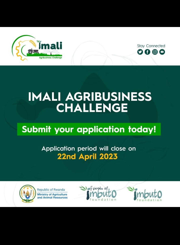 #ImaliAgriChallenge izafasha urubyiruko rukora umwuga w’ubuhinzi kwiteza imbere no guteza imbere ibikomoka ku buhinzi. Andikisha umushinga wawe bitarenze tariki 22 Mata 2023. Imishinga 5 ya mbere izahabwa inkunga ya 10,000,000 Rwf.