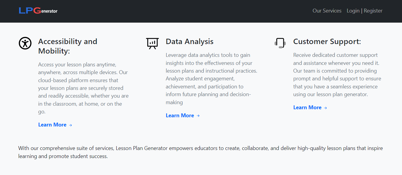 As we embark on this journey of innovation and transformation, we invite you to join us in embracing the potential of the Lesson Plan Generator to revolutionize education for generations to come. Together, let us unlock the power of technology to inspire, empower, and educate the leaders of tomorrow.
