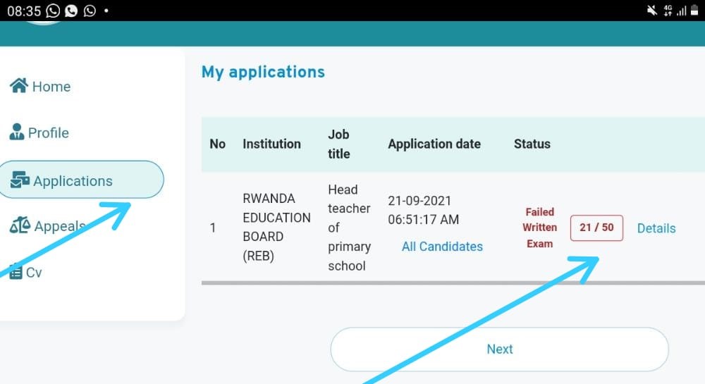 5.Kanda kuri Application urahita ubona amanota yawe