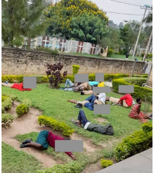 Bamwe muri abo banyeshuri biga mu myaka itandukanye twasanze bari mu busitani bw’Ikigo Nderabuzima cya Kibingo,   baryamye mu byatsi, abandi baryamye ku ntebe z’ikigo Nderabuzima, bategereje ko babageraho bakavurwa.