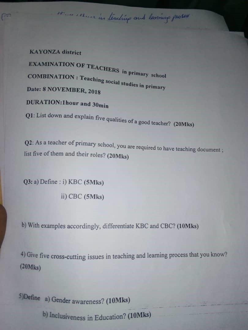 AGACUPURI- PRIMARY TEACHING SOCIAL AND RELIGIOUS STUDIES EXAM (Past paper)