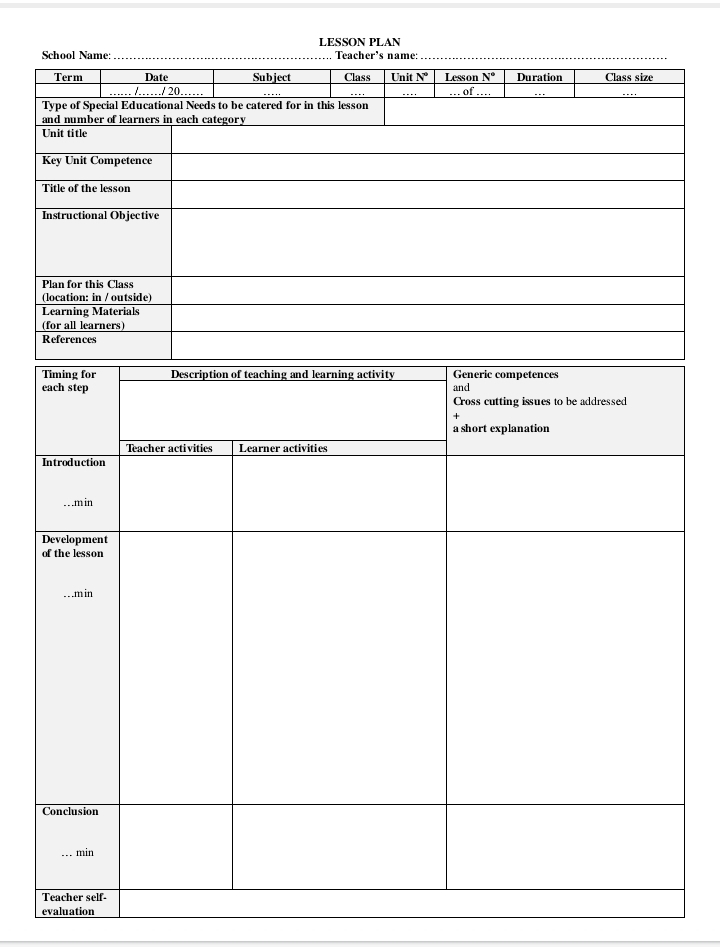 ALL LESSON PLANS TEMPLATES IN DIFFERENT LANGUAGES.