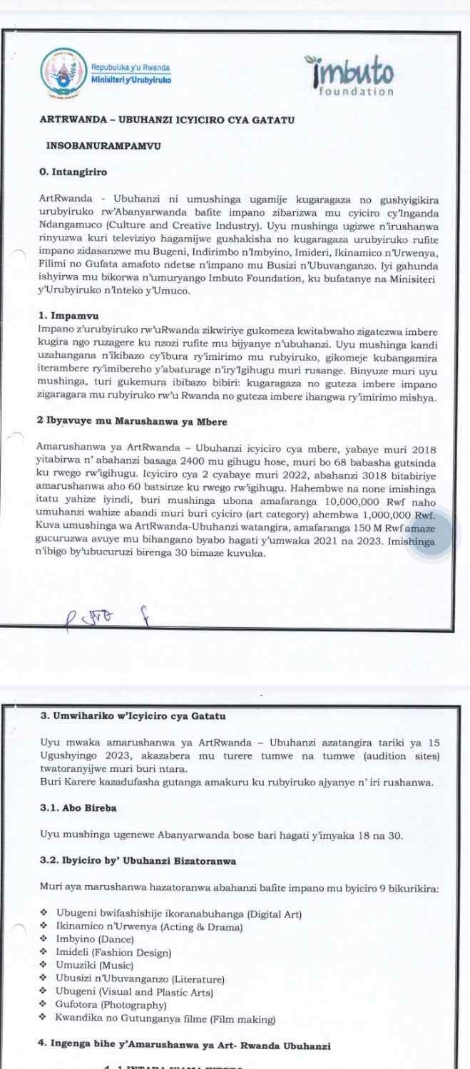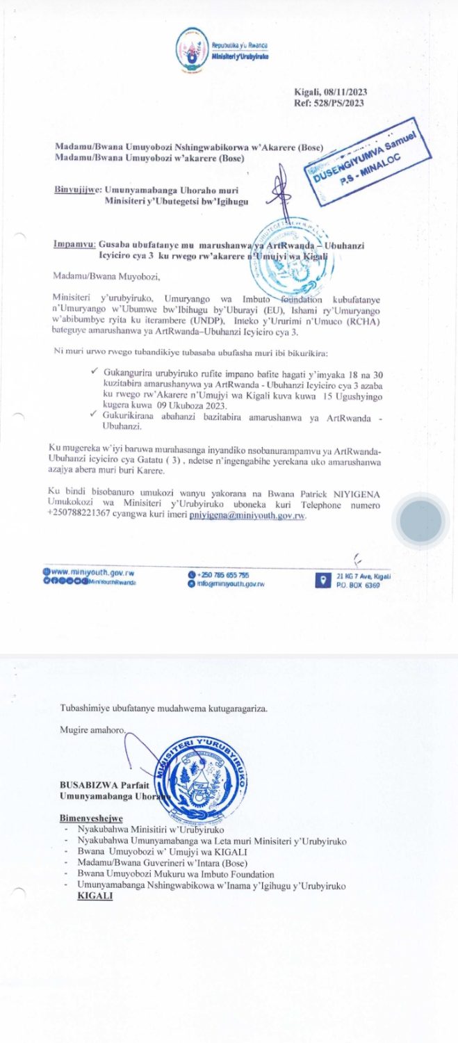 Gusaba ubufatanye mu marushanwa ya ArtRwanda – Ubuhanzi Icyiciro cya 3 ku rwego rw’akarere n’Umujyi wa Kigali