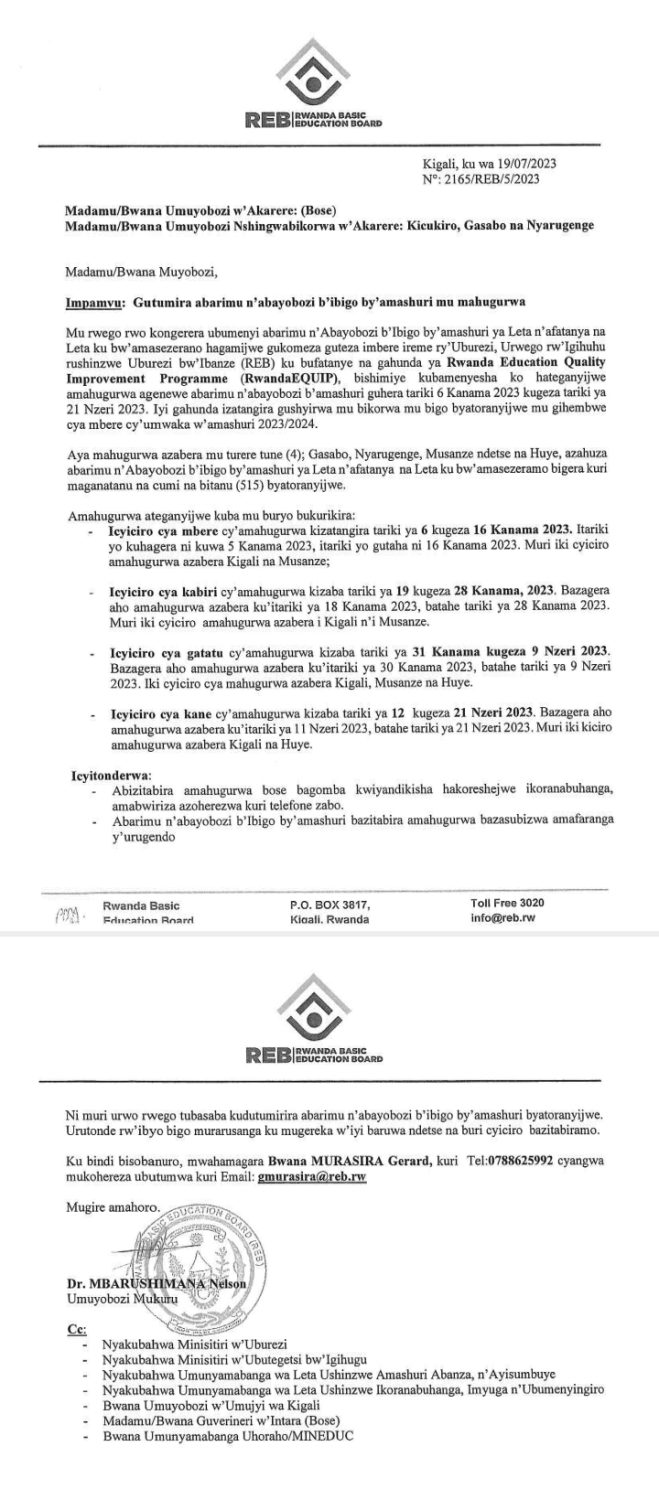 AMAHUGURWA Y’ABARIMU N’ABAYOBIZI B’IBIGO BY’AMASHURI.