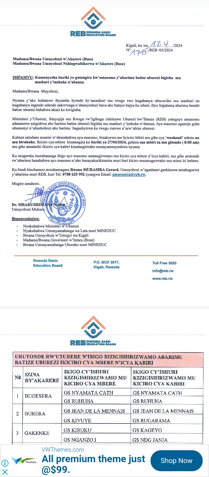 AMATARIKI YO GUTANGIRA KW’AMASOMO Y’ABARIMU BATIZE N’UBUREZI.