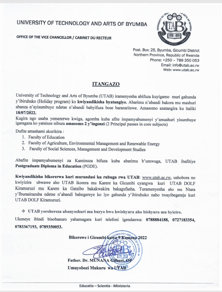 ANNOUNCEMENT :UTAB JULY INTAKE.