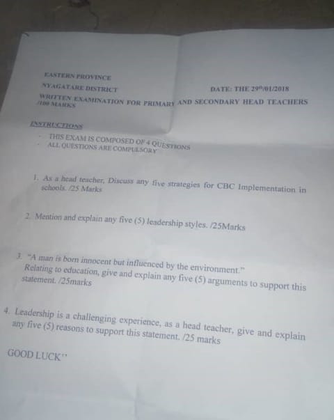 HEADTEACHER PRIMARY AND SECONDARY PAST PAPER.(SOFT PAPER)