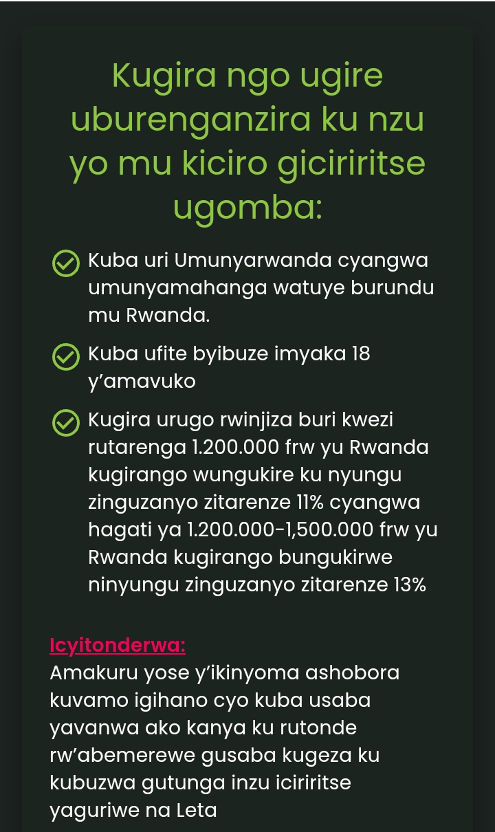 IBISABWA NGO UHABWE INZU MURI GAHUNDA YA “GIRIWAWE”