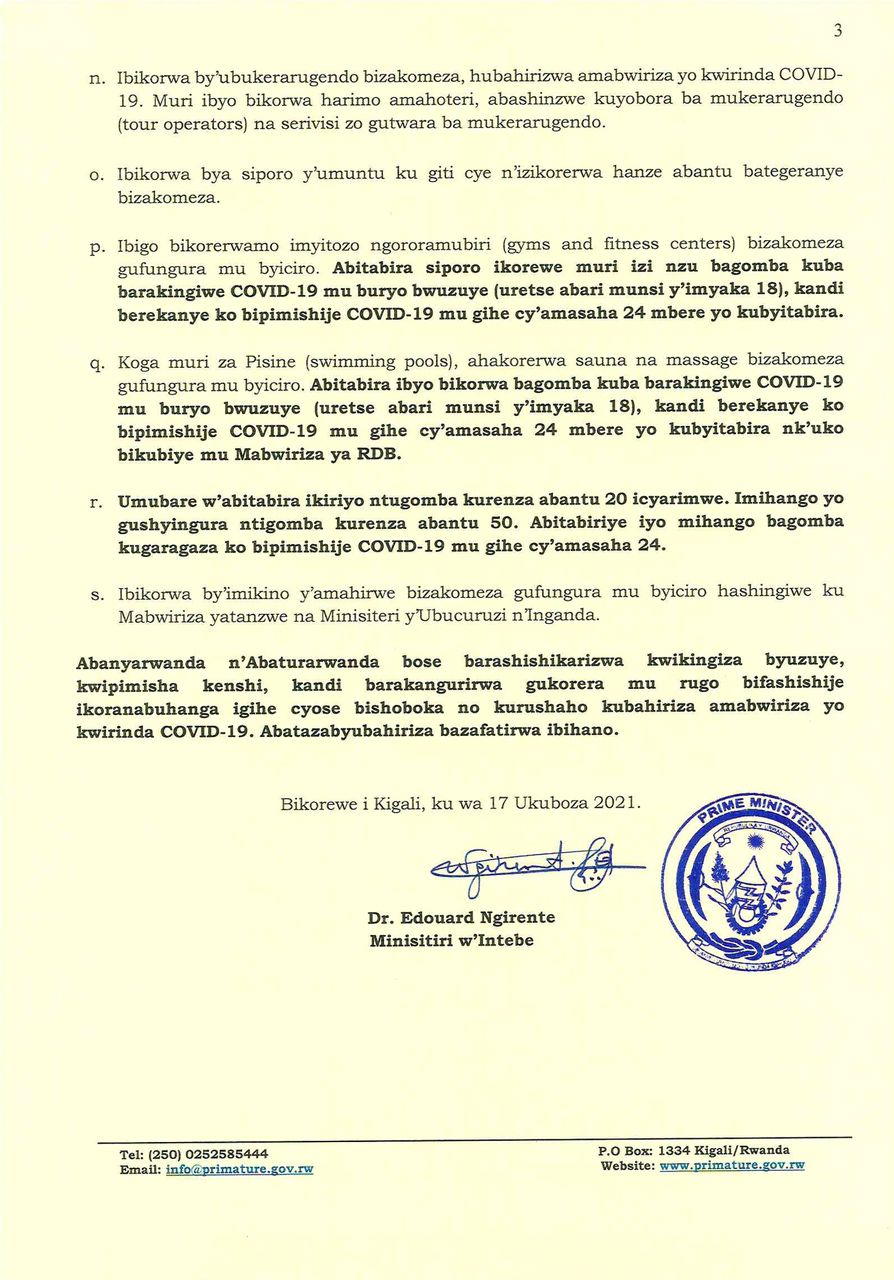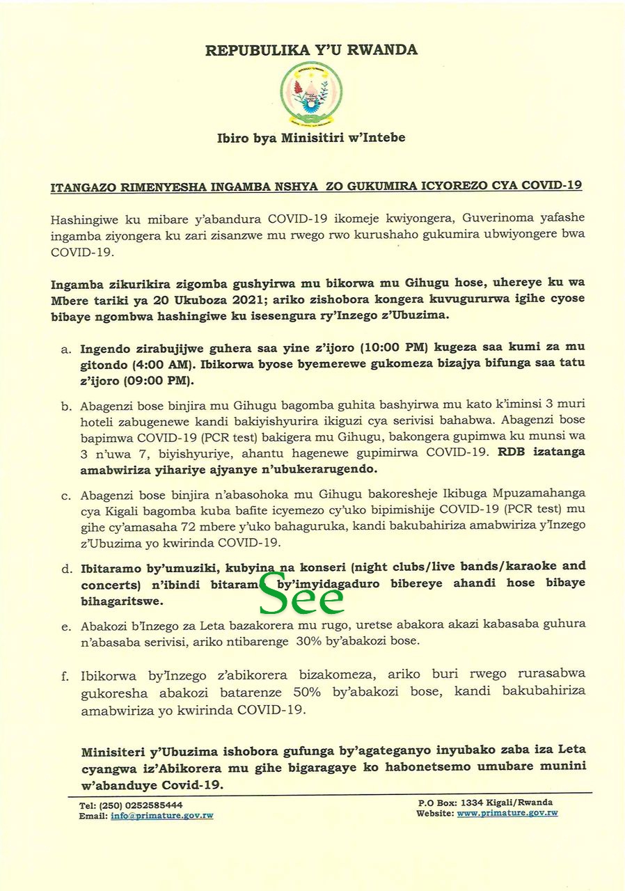 IBITARAMO BY’UMUZIKI,KUBYINA NA KONSERI (night clubs/live bands/ karaoke and concerts) N’IBINDI BITARAMO BY’IMYIDAGADURO BIBEREYE AHANDI HOSE BIBAYE BIHAGARITSWE.