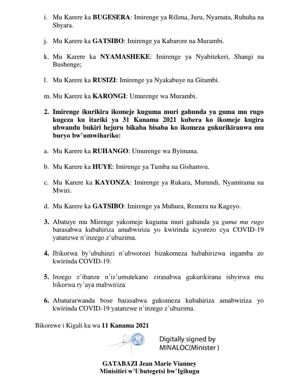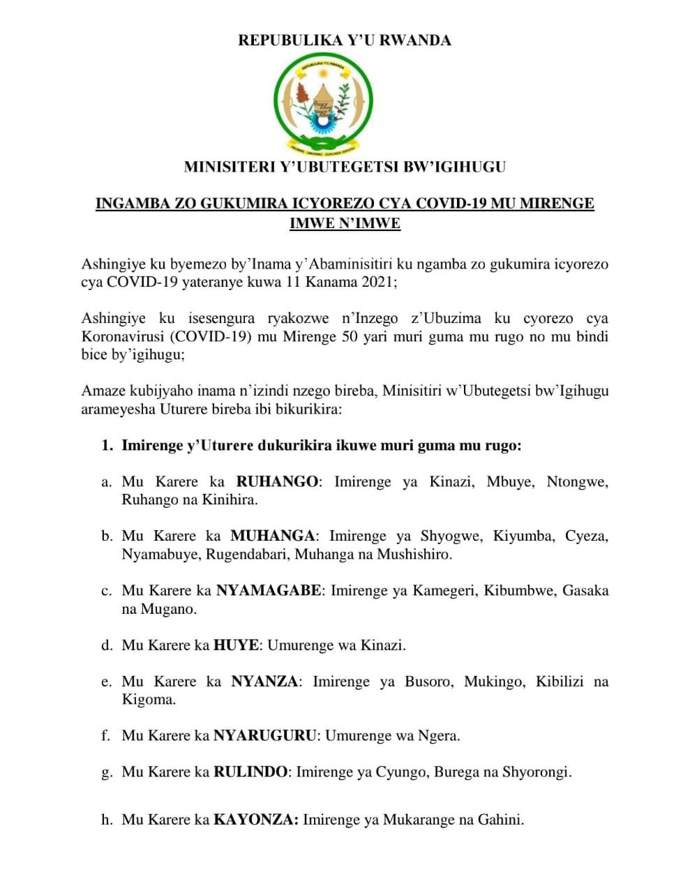 Imirenge yari yarashyizwe muri gahunda ya guma rugo yayikuwemo, usibye imirenge 10