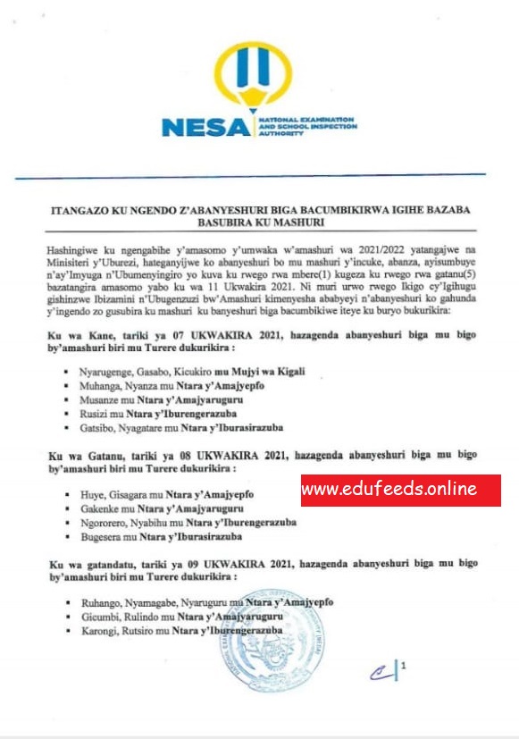 ITANGAZO KU NGENDO Z’ABANYESHURI BACUMBIKIRWA IGIHE BAZABA BASUBIRA KU MASHURI.