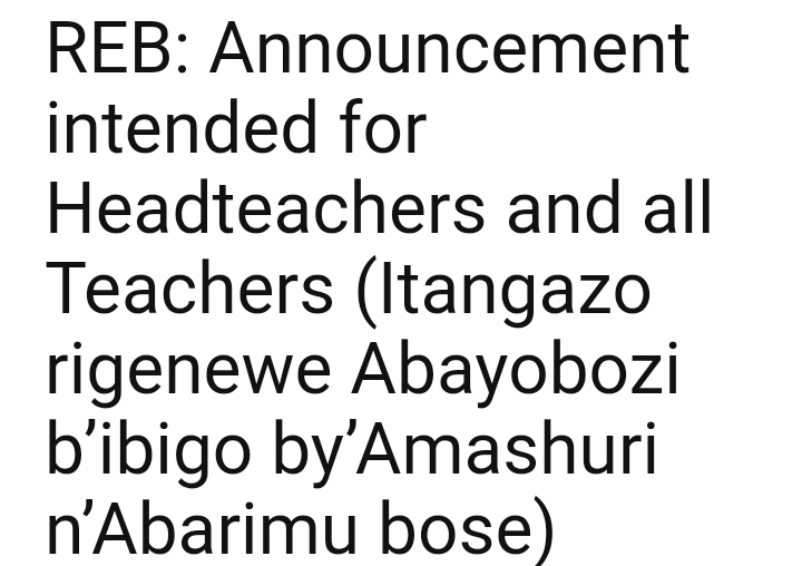 ITANGAZO RIGENEWE ABARIMU N’ABAYOBIZI B’IBIGO BY’AMASHURI.