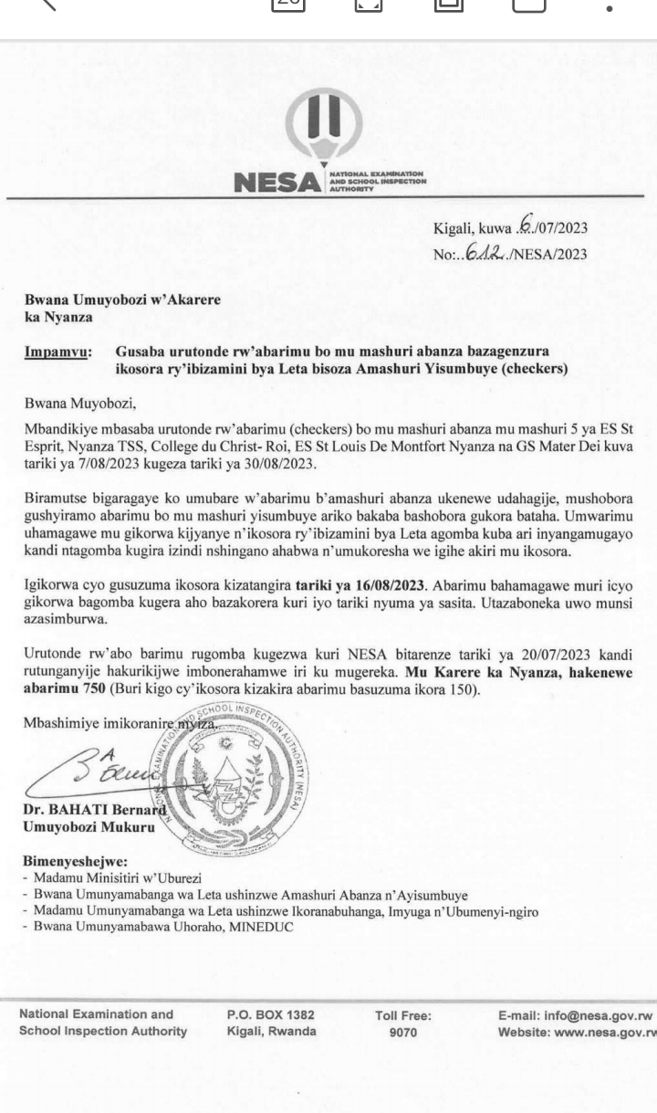 ITANGAZO RIREBA ABA CHECKERS