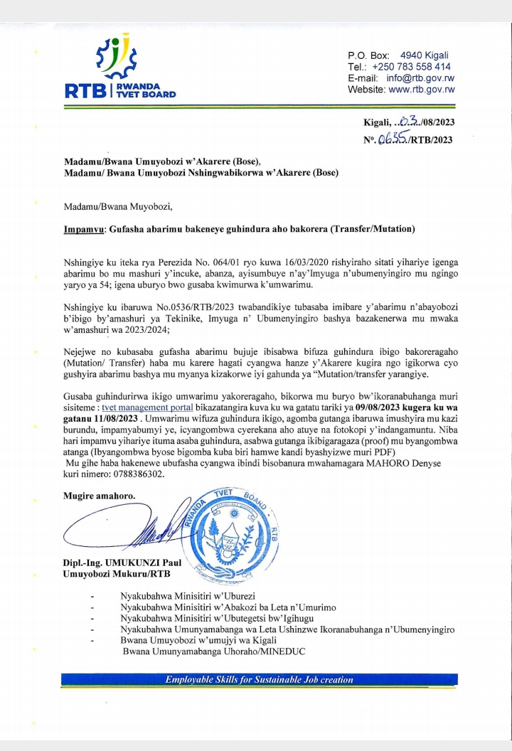 ITANGAZO RIREBA ABARIMU BIFUZA MUTATION / TRANSFER.