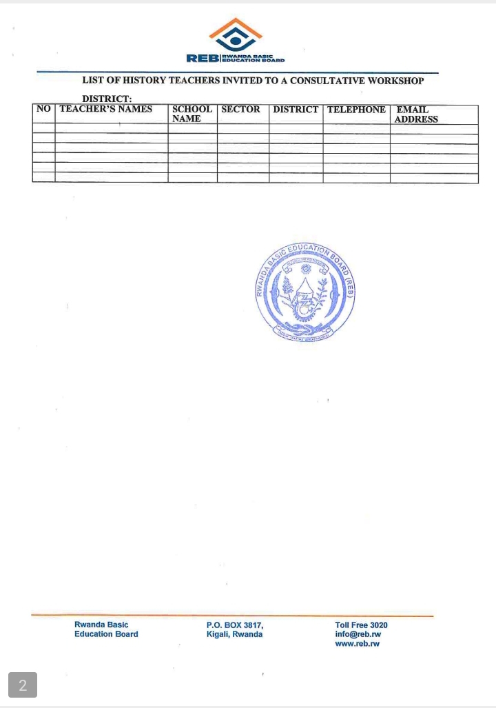 ITANGAZO RIREBA ABARIMU BIGISHA HISTORY NA SOCIAL STUDIES.