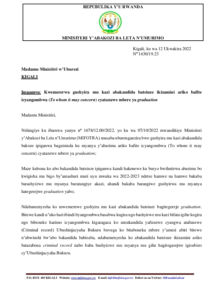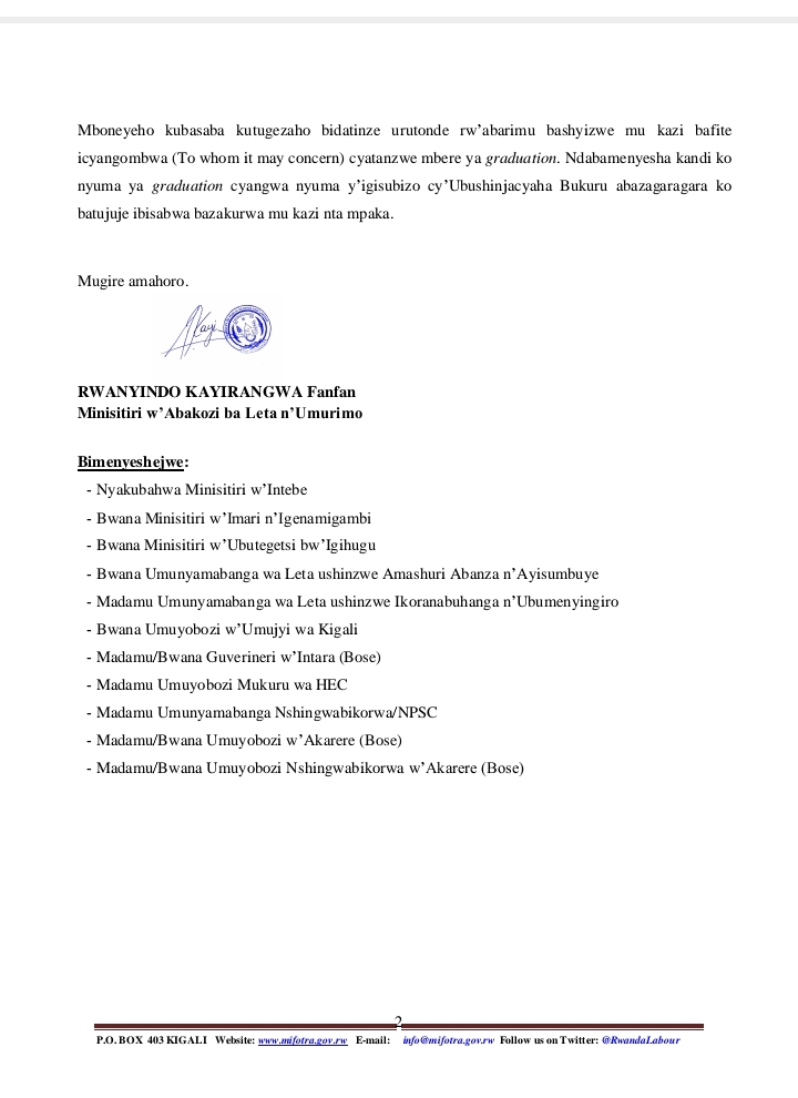 ITANGAZO RIREBA ABATSINZE IBIZAMINI BAFITE TO WHOOM IT MAY CONCERN