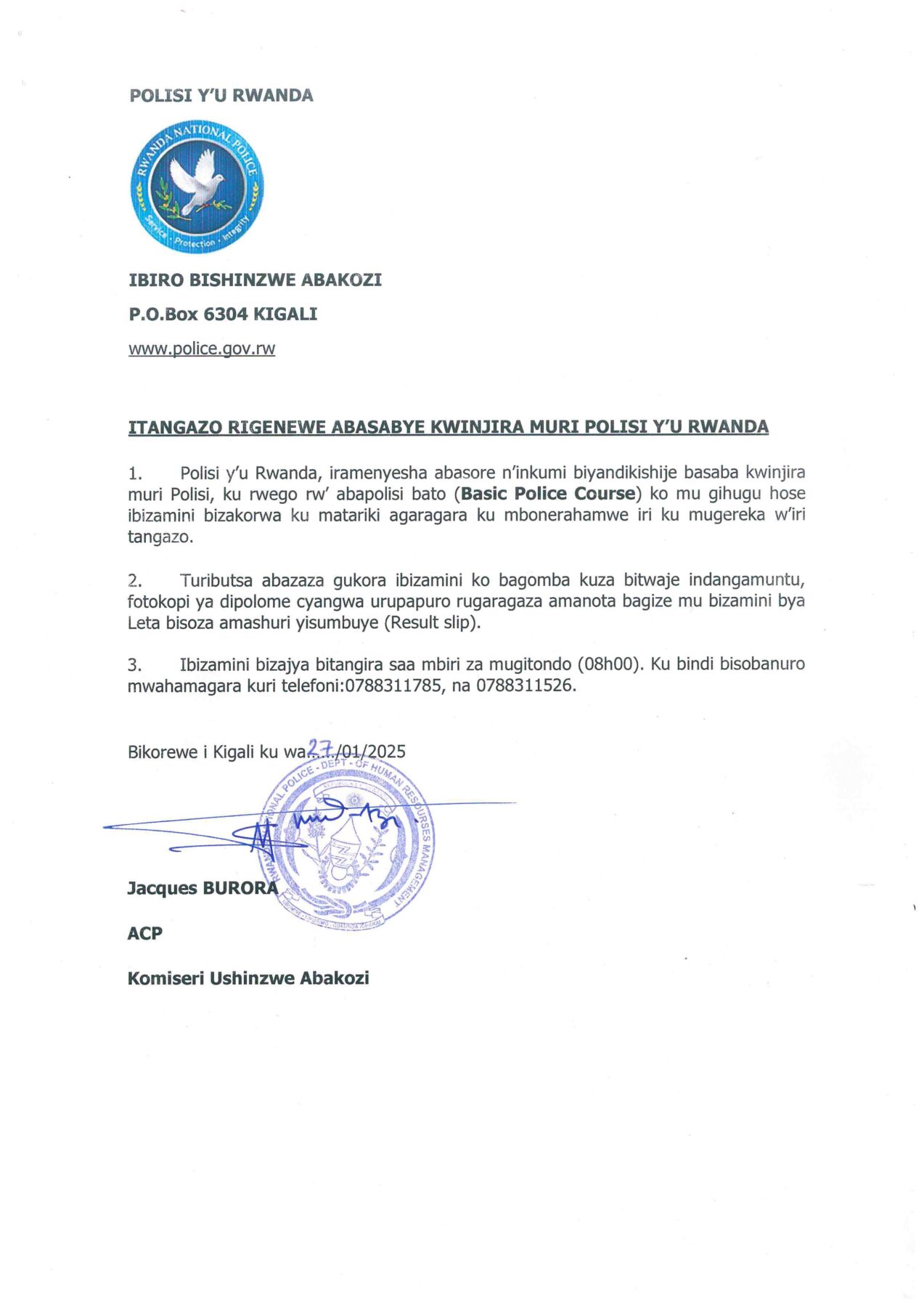 ITANGAZO RIREBA KWINJIRA MURI POLISI Y’U RWANDA.