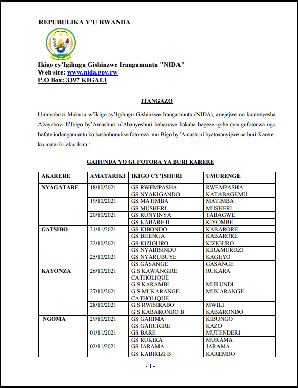 HomeBreaking NewsAnnouncement Announcement ITANGAZO RYA NIDA RIGARAGAZA IBIGO BY’AMASHURI ABANYESHURI BAZAFOTORERWAHO GUHERA 18/10/2021 KUGEZA 15/11/ 2021 By THE CEO October 19, 2021 0 1171 FacebookTwitterPinterestWhatsApp Mumenyeshe abanyeshuri banyu hatazagira ucikanwa. Post Views: 517 TagsEducation Share FacebookTwitterPinterestWhatsApp Previous articleGOOD JOBS AT KIVU PEACE VIEW HOTEL.Next articleISHYIRWA MU MYANYA RY’ABARIMU MURI BURI KARERE THE CEO Related Articles OPPORTUNITIES 🔥 Top 54 Most Profitable YouTube Niches in 2025 (Backed by Viewers & Trends) OPPORTUNITIES Helping a slow learner requires patience, understanding, and strategies tailored to their developmental level. Below is a comprehensive guide covering what slow learners are,... OPPORTUNITIES Smart Classes in Education: Transforming Student Learning in the 21st Century. LEAVE A REPLY Cancel reply Comment: Please enter your comment! Name:* Please enter your name here Email:* You have entered an incorrect email address! Please enter your email address here Website: Save my name, email, and website in this browser for the next time I comment. [td_block_social_counter facebook="tagdiv" twitter="tagdivofficial" youtube="tagdiv" style="style8 td-social-boxed td-social-font-icons" tdc_css="eyJhbGwiOnsibWFyZ2luLWJvdHRvbSI6IjM4IiwiZGlzcGxheSI6IiJ9LCJwb3J0cmFpdCI6eyJtYXJnaW4tYm90dG9tIjoiMzAiLCJkaXNwbGF5IjoiIn0sInBvcnRyYWl0X21heF93aWR0aCI6MTAxOCwicG9ydHJhaXRfbWluX3dpZHRoIjo3Njh9" custom_title="Stay Connected" block_template_id="td_block_template_8" f_header_font_family="712" f_header_font_transform="uppercase" f_header_font_weight="500" f_header_font_size="17" border_color="#dd3333"] - Advertisement - Latest Articles OPPORTUNITIES 🔥 Top 54 Most Profitable YouTube Niches in 2025 (Backed by Viewers & Trends) OPPORTUNITIES Helping a slow learner requires patience, understanding, and strategies tailored to their developmental level. Below is a comprehensive guide covering what slow learners are,... OPPORTUNITIES Smart Classes in Education: Transforming Student Learning in the 21st Century. OPPORTUNITIES A Smart School of the 21st Century goes beyond traditional education by integrating technology, innovation, and modern pedagogy to create a dynamic, student-centered learning... OPPORTUNITIES Gusobanukirwa, Kwemeza, Igenzura ry’Ibisuzumabumenyi: Kuki ari ingenzi mu Burezi bwiza Load more