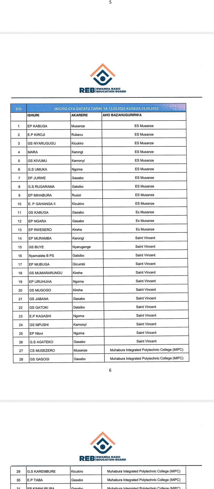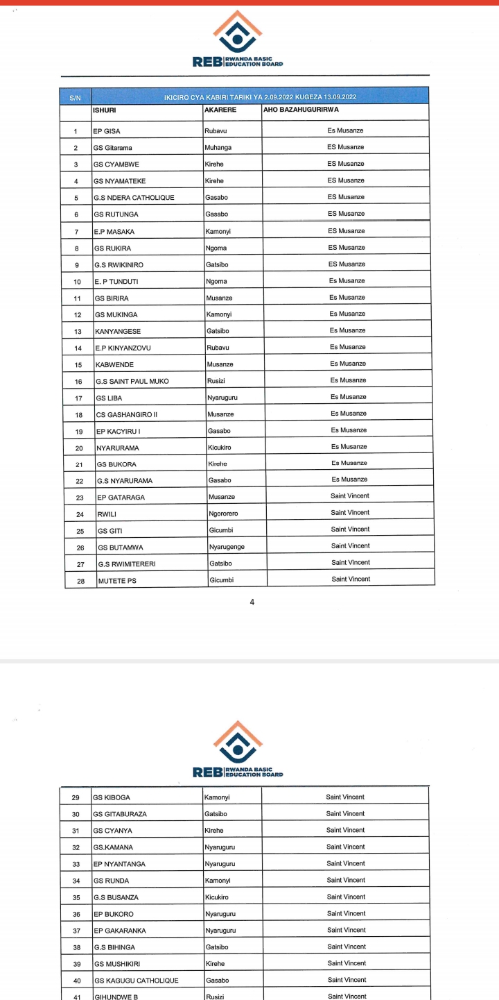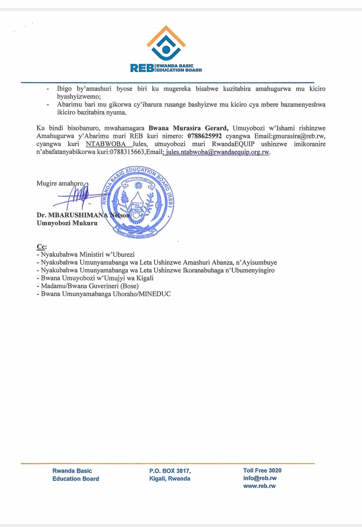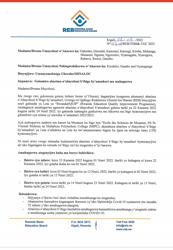 ITANGAZO RYA REB RITUMIRA ABARIMU N’ABAYOBOZI B’IBIGO BY’AMASHURI MU MAHUGURWA.