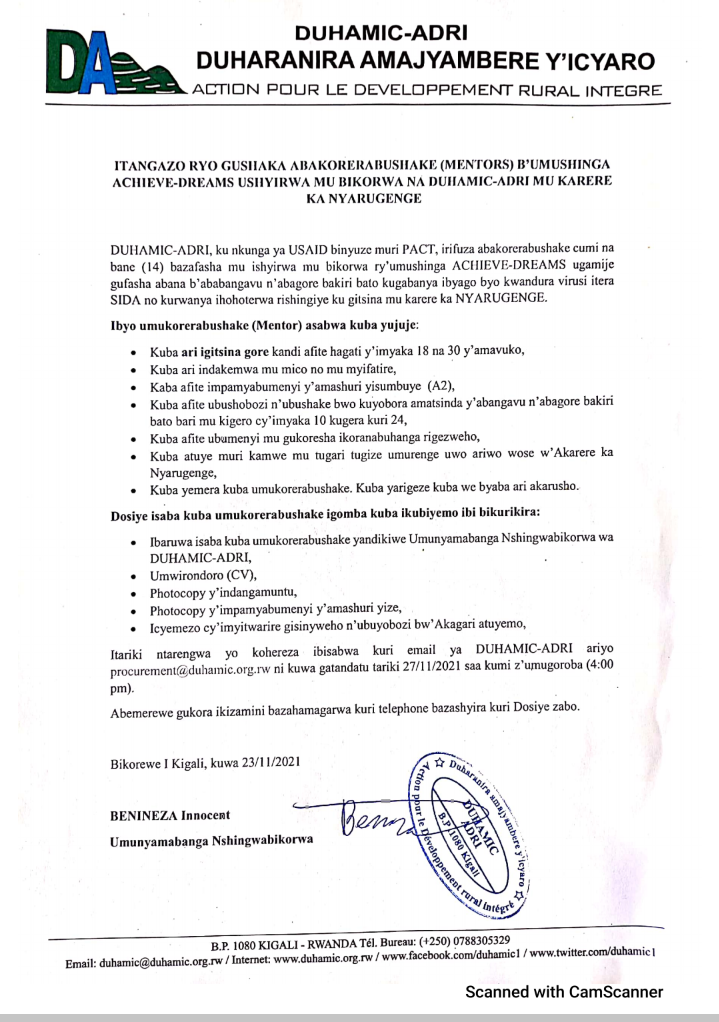 ITANGAZO RYO GUSHAKA ABAKORERABUSHAKE B’UMUSHINGA “ACHIEVE-DREAMS “