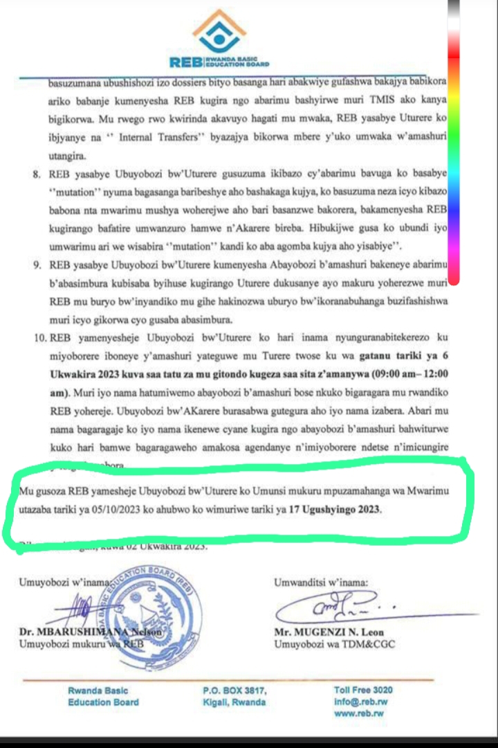 ITARIKI UMUNSI WA MWARIMU WIMURIWEHO YAMENYEKANYE.