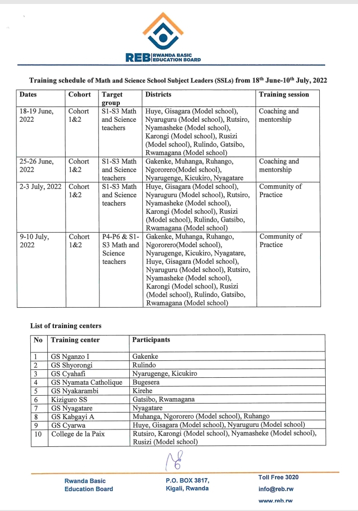LIST OF TRAINING CENTRES FOR ALL DISTRICTS.