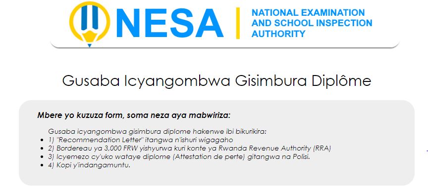 NESA: Link wakoresha usaba icyangombwa gisimbura Diplome