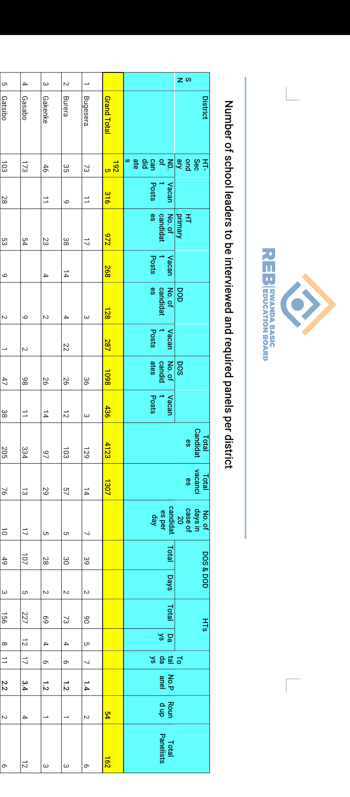 NUMBER OF SCHOOLS LEADERS TO BE INTERVIEWED AND REQUIRED PANELS PER DISTRICT.