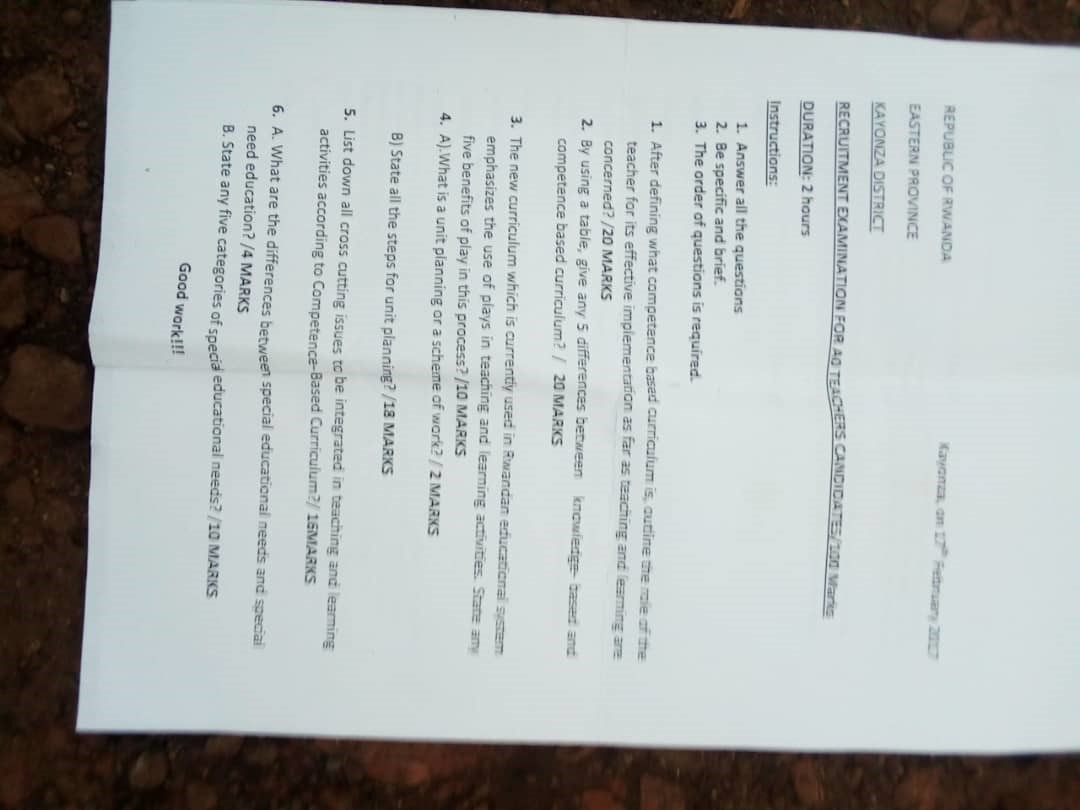 PAST PAPERS FOR A0 TEACHER No 2