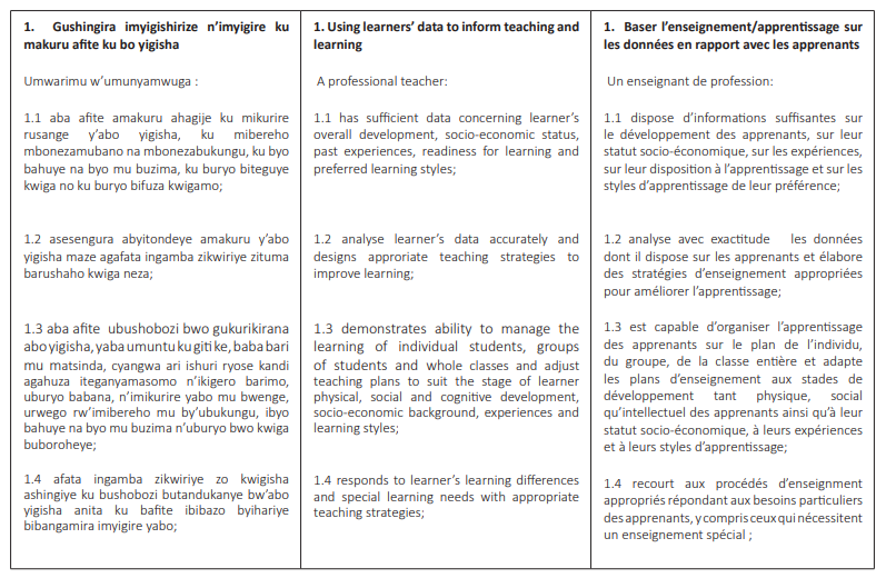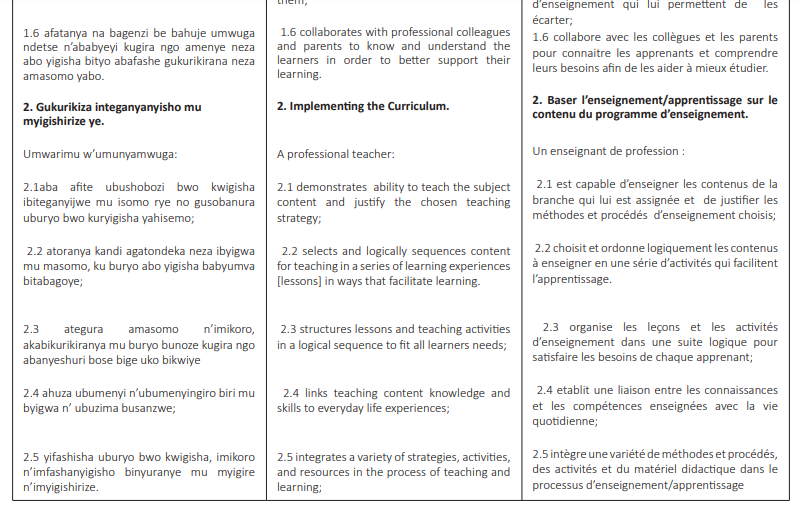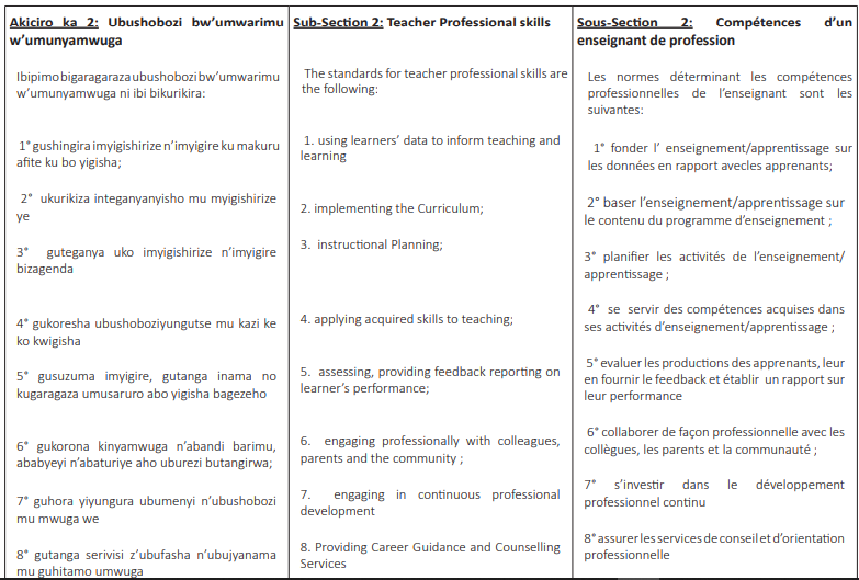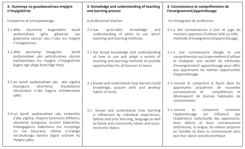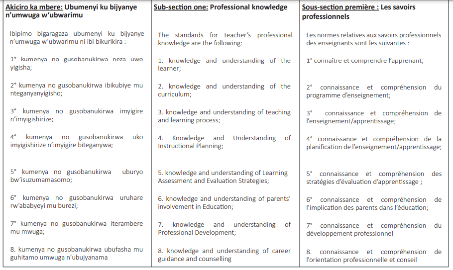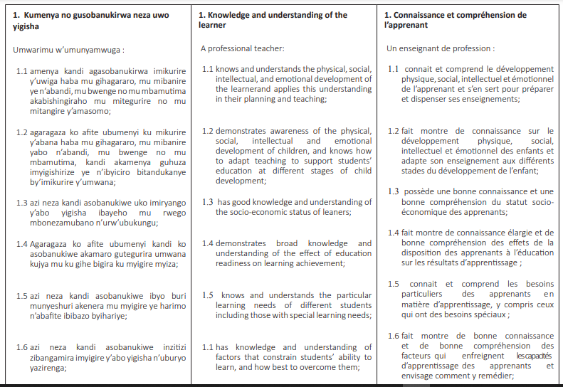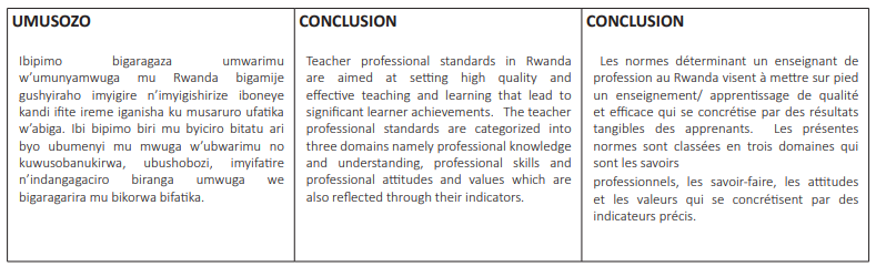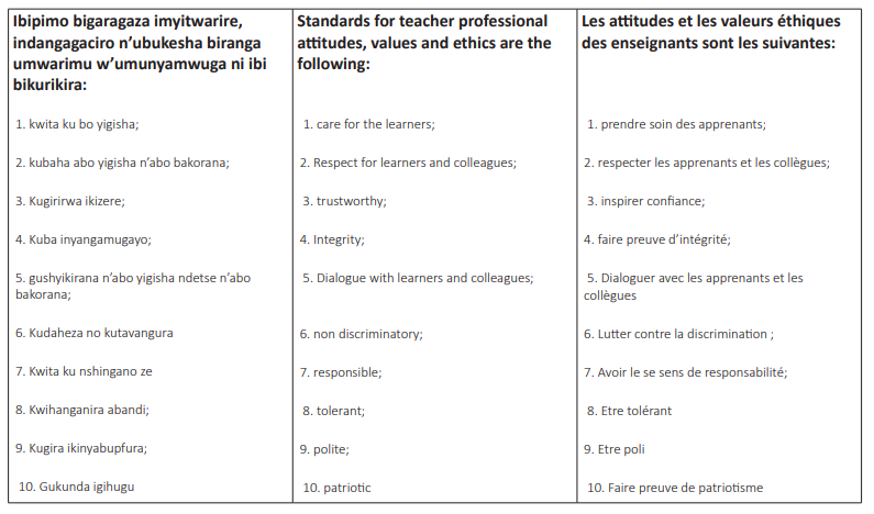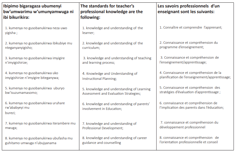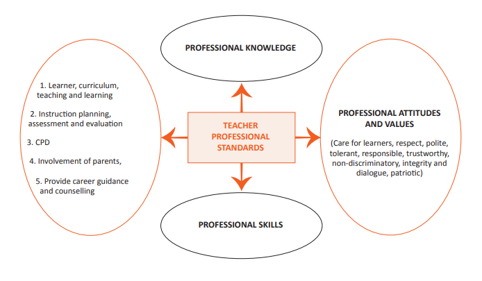 Teacher professional standards comprise of three domains: Professional knowledge, professional skills, professional attitudes and values which teachers are expected to demonstrate as they do their day to day work.