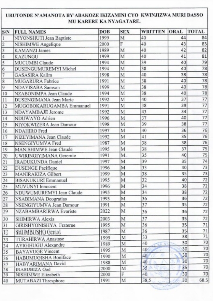 URUTONDE N’AMANOTA BY’ABAKOZE IKIZAMINI CYA DASSO