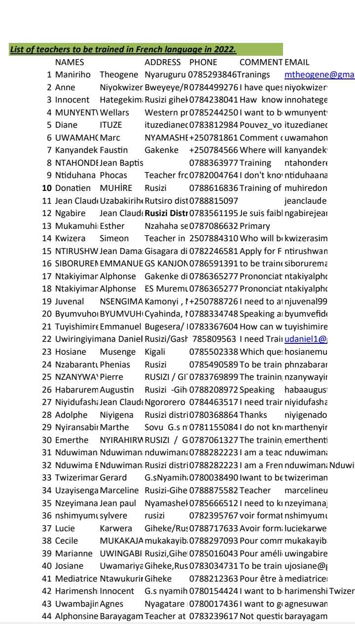 Amazina y’abarimu bazahugurwa mu rurimi rw’Igifaransa 2022. Téléchargez la liste vers la fin de cette article.